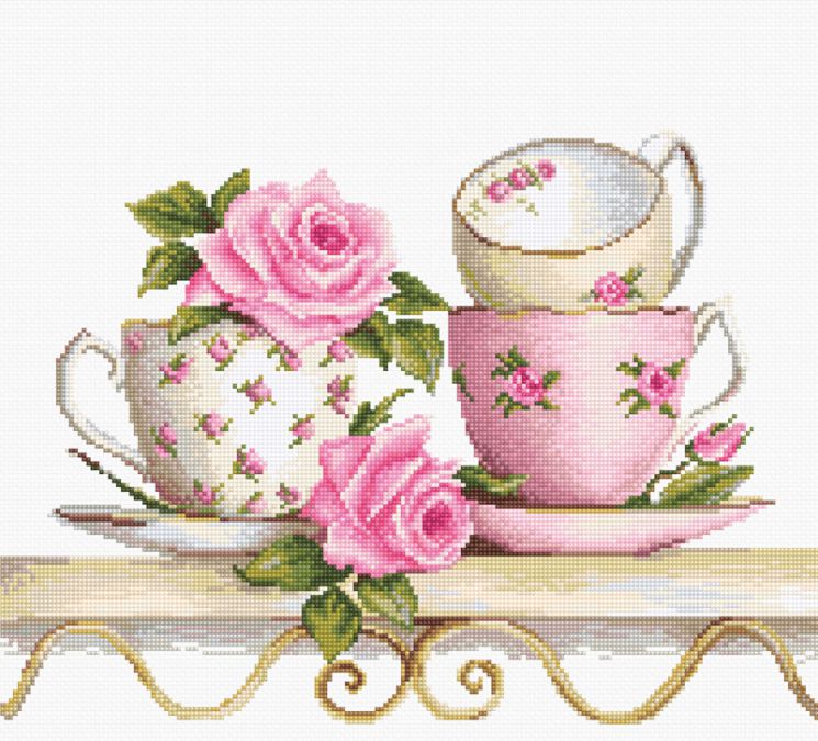 B2327 Набор для вышивания Luca-S "Чайные чашки с розами"